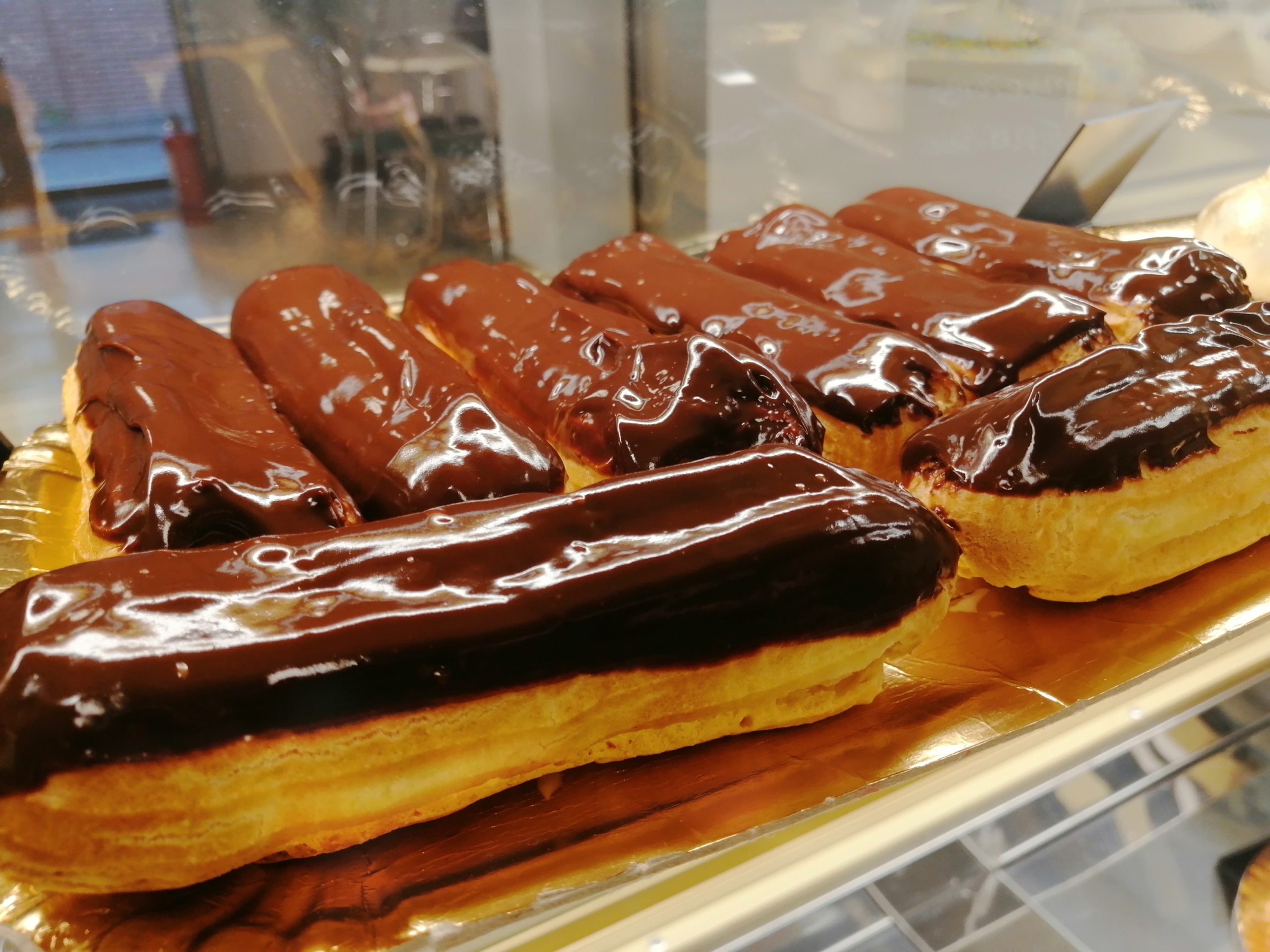Ecler cu umplutura de crema de vanilie si glazura de ciocolata belgiana.